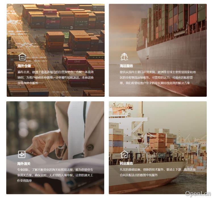 网站服务:物流与仓储,全球化仓储网络,智能科技驱动,灵活多样的海运服务,专业清关服务,数字化中转服务。
