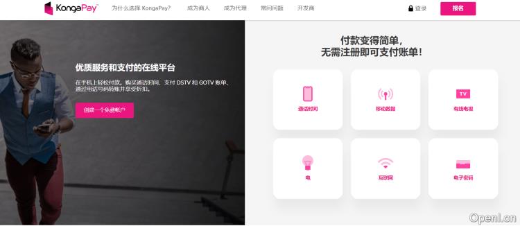 下图为KongaPay官网,卖家可以申请创建账户,使用KongaPay可以更加便捷地在Konga上进行交易。