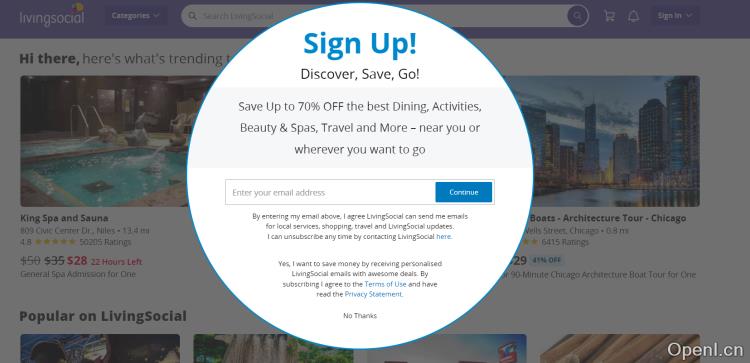 OpenI小编发现LivingSocial 美国网站非常受用户欢迎,请访问LivingSocial 美国网址入口试用。