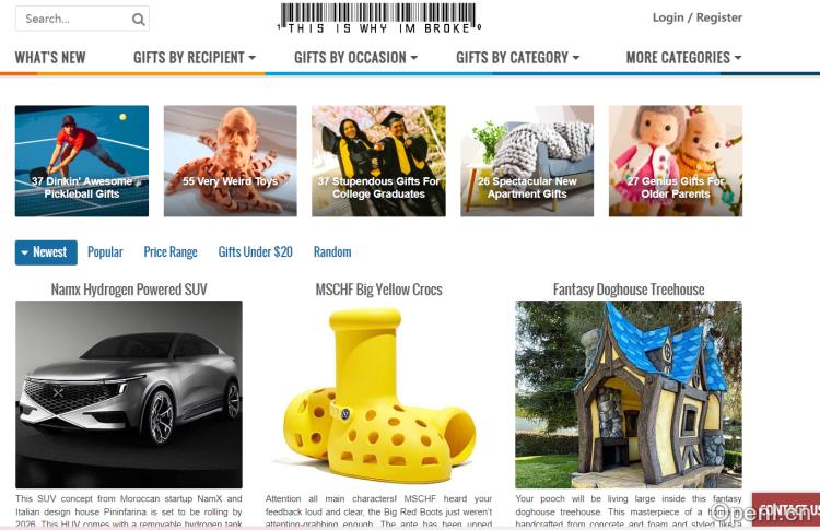 ThisIsWhyImBroke是一个免费在线杂志,由一群经常在线逛街的奇客运营,主要提供各种奇特的产品和消费品展示,如奇装异服、奇特的火枪、个人配件、古怪的炊具、家具等。