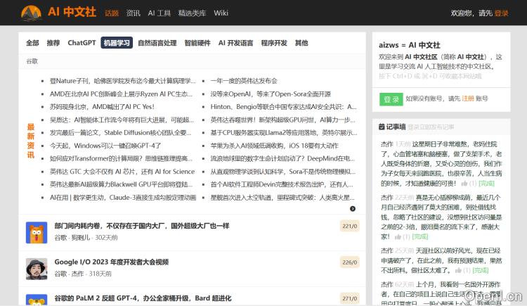 用户可以在社区中学习和交流 AI 人工智能技术,获取最新的资讯和技术分享。