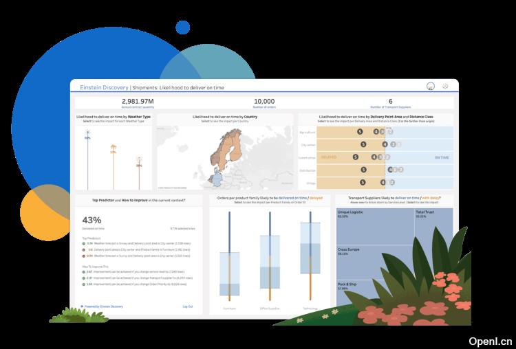可视化分析平台: Tableau 的可视化分析平台旨在改变个人和组织使用数据解决问题的方式。得到各种规模组织的信任,Tableau 提供一个平台,完全集成了人工智能/机器学习功能、提供治理和数据管理支持、支持视觉叙事和鼓励协作。用户可以在云端、本地或与 Salesforce CRM 进行本地集成。