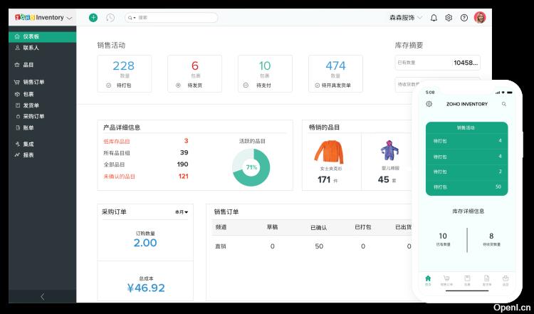 - Zoho Inventory 是一款全面的基于云的库存管理软件,旨在简化和优化企业运营的各个方面。借助其用户友好的界面,企业可以轻松创建和管理销售和采购订单,确保库存跟踪的顺畅流程。其显著特点包括强大的商品和订单管理、有效的库存控制、仓库管理以及对多渠道销售的支持。Zoho Inventory 不仅限于简单的订单管理,还与流行的在线销售渠道如 Amazon、eBay 和 Etsy 以及购物车如 Shopify 等进行了无缝集成。此外,它方便地与其他 Zoho 应用集成,包括用于会计的 Zoho Books、数据洞察的 Zoho Analytics 以及客户关系管理的 Zoho CRM。这种便捷性延伸到了适用于 Android 和 iOS 设备的移动应用程序,使用户能够在移动中管理联系人、访问实时数据、跟踪销售订单、监视多个仓库、查看发票并处理付款。