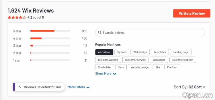 团队通过查询点评网站,得知Wix获得了现有用户的较高评价,在G2.com上,Wix评分为4.2/5.0分,共1624人做出了评论。