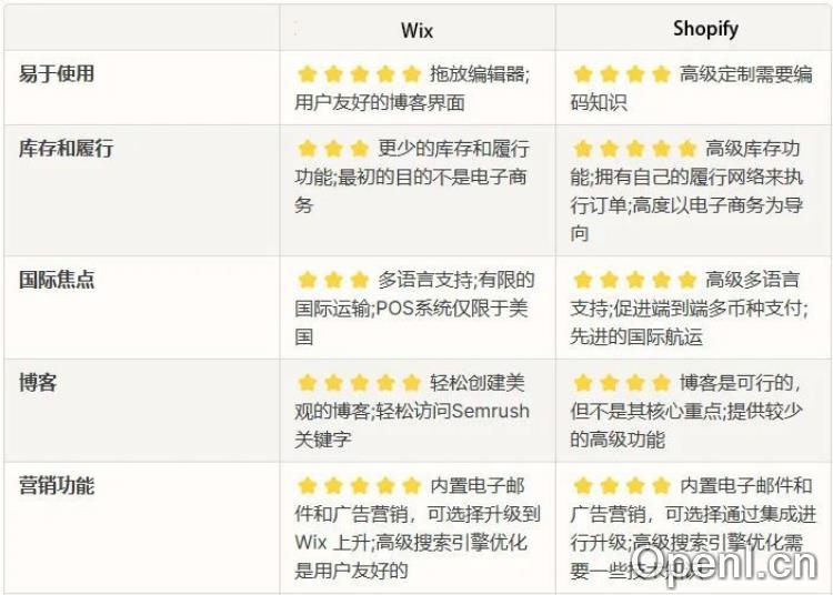 Wix与Shopify相比优缺点: