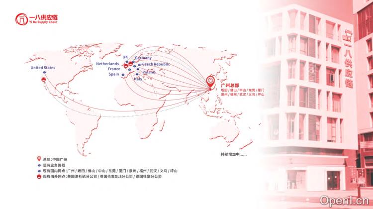 广东一八供应链管理有限公司成立于2016年,总部位于广州,在华南、华东、华中、美国、英国、德国等全球各地分别设有子公司及分公司,员工数百人;深耕跨境物流行业8年,拥有三十七万平米的国内集运仓和国外转运仓储;拥有遍布全球的清关网络,自建多条极具优势的跨境专线物流产品,目前已为接近20000家企业提供优质的跨境物流交付服务。