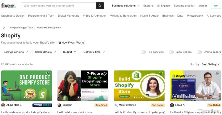 在Fiverr上,网站开发中的Shopify开发是一项热门服务。职业者和Shopify专家提供广泛的Shopify开发服务,包括构建和定制网站、帮助商家设置和集成商店等。