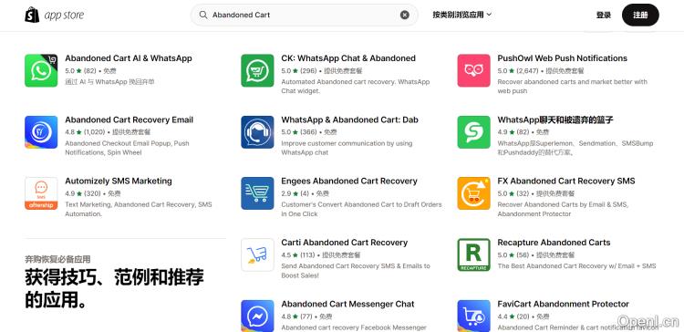 OpenI小编发现Shopify弃购再营销网站非常受用户欢迎,请访问Shopify弃购再营销网址入口试用。